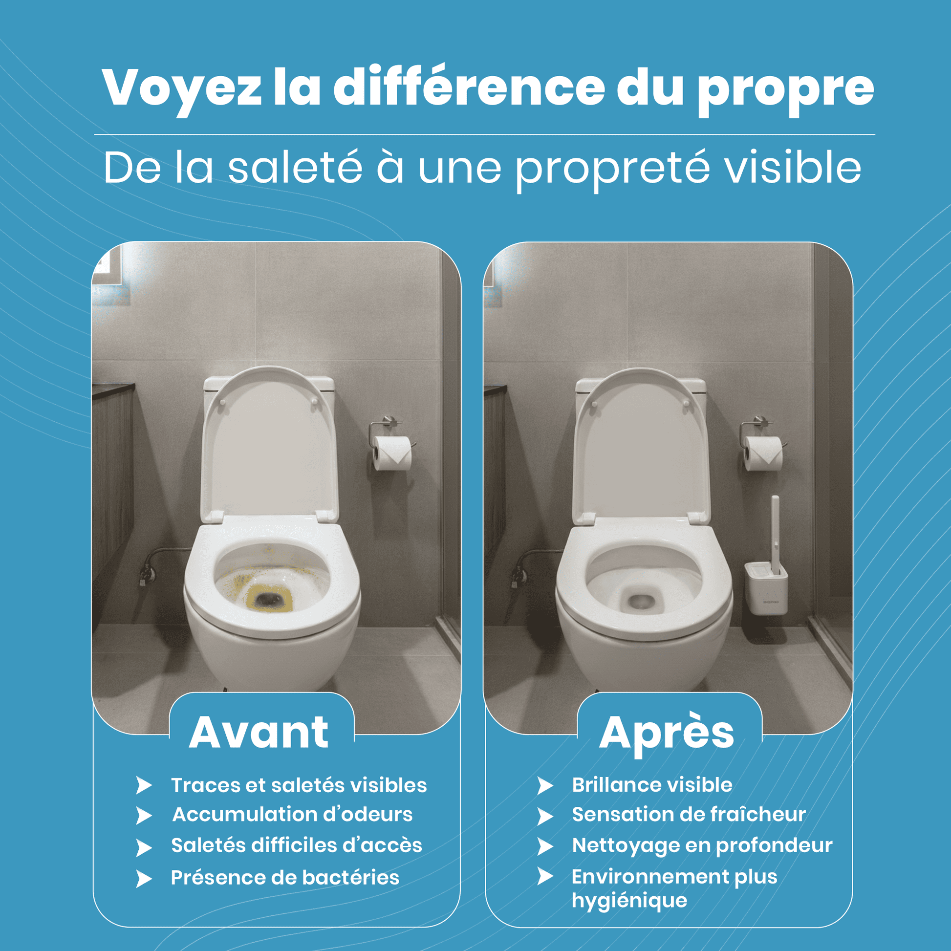C'est un investissement intelligent pour votre tranquillité d'esprit ! finie la brosse sale qui traîne avec notre solution, vous offrez à votre foyer une propreté irréprochable et une sensation de fraîcheur inégalée, jour après jour.